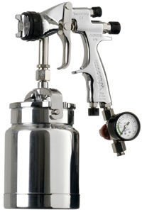 GENESI I HTE | GENESI I HTE Корпус: никелированный и хромированный алюминий Сопло:нержавеющая сталь марки AISI 303 Игла, пружина: нержавеющая сталь Распыляющая головка: никелированная латунь Давление в распыляющей головке: 1,2 бар. Прокладки: PTFE (тефлон) самоуплотняющиеся штатный прямоточный регулятор с манометром типичное применение: финишная окраска в кузовном ремонте, особенно типов металлик и перламутр | сопло 0,8 1,0 1,2 1,3 1,4 1,7 1,9 2,5 | код заказа 954008 954010 954012 954013 954014 954017 954019 954025 | рабочее давление | 2,0-2,5 бар. | потребление воздуха | 340 л/мин | вес | 1045 гр. | нижний бачок 1000 мл алюминий |