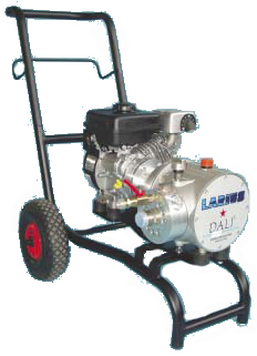 код заказа 18956 -DALI (бензин) в комплекте, без сопла (дополнительный заказ) | Агрегат безвоздушного распыления высокого давления DALI предназначен для распыления красок и дисперсионных составов, низкой и средней вязкости, в том числе абразивных, для средних объёмов в строительстве и ремонтных работах. В комплекте: краскораспылитель AT250 с соплодержателем, без сопла (дополнительный заказ), шланг 1/4" 10м, манометр давления ЛКМ, система рециркуляции. Смонтирован на колесном шасси. Двигатель внутреннего сгорания позволяет работать автономно. | Технические характеристики: | Максимальное давление: | 220 бар | Мощность бензинового двигателя: | 3 л.с. | Система рециркуляции: | + | Максимальный размер сопла | 0,021” | Подача (свободно) | 4,5 л / мин | Вес: | 48 кг | Габариты : | 1100х590х840 мм |